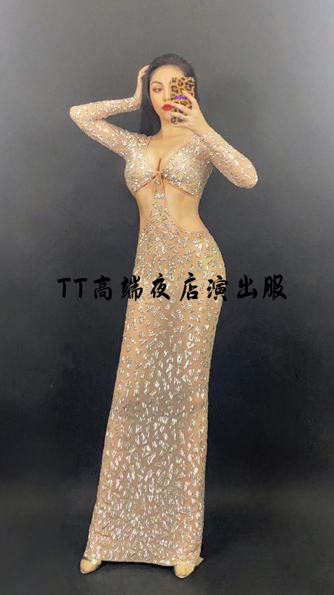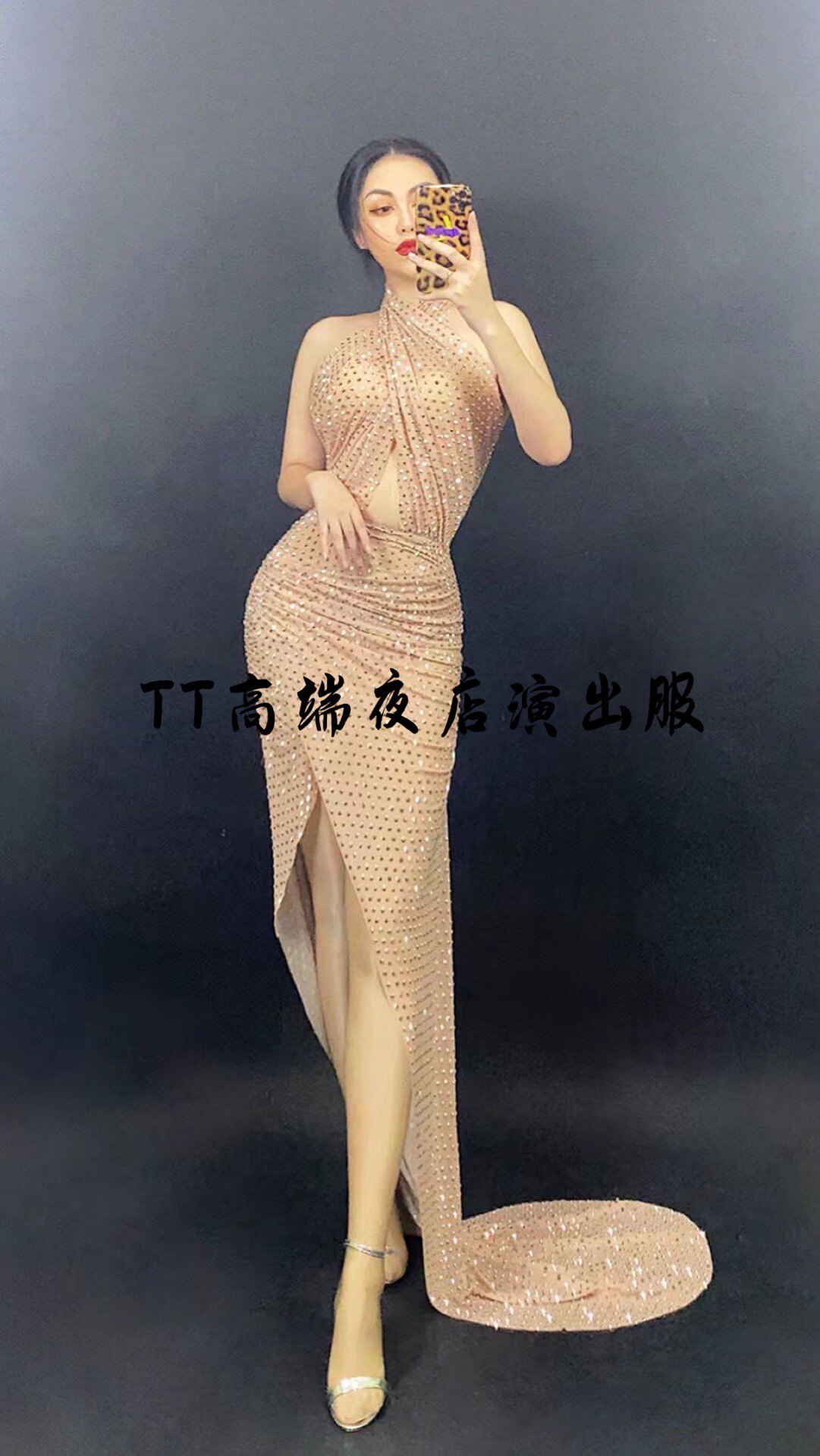 TT high-end custom nightclub singer ds full drill neck pleated dress