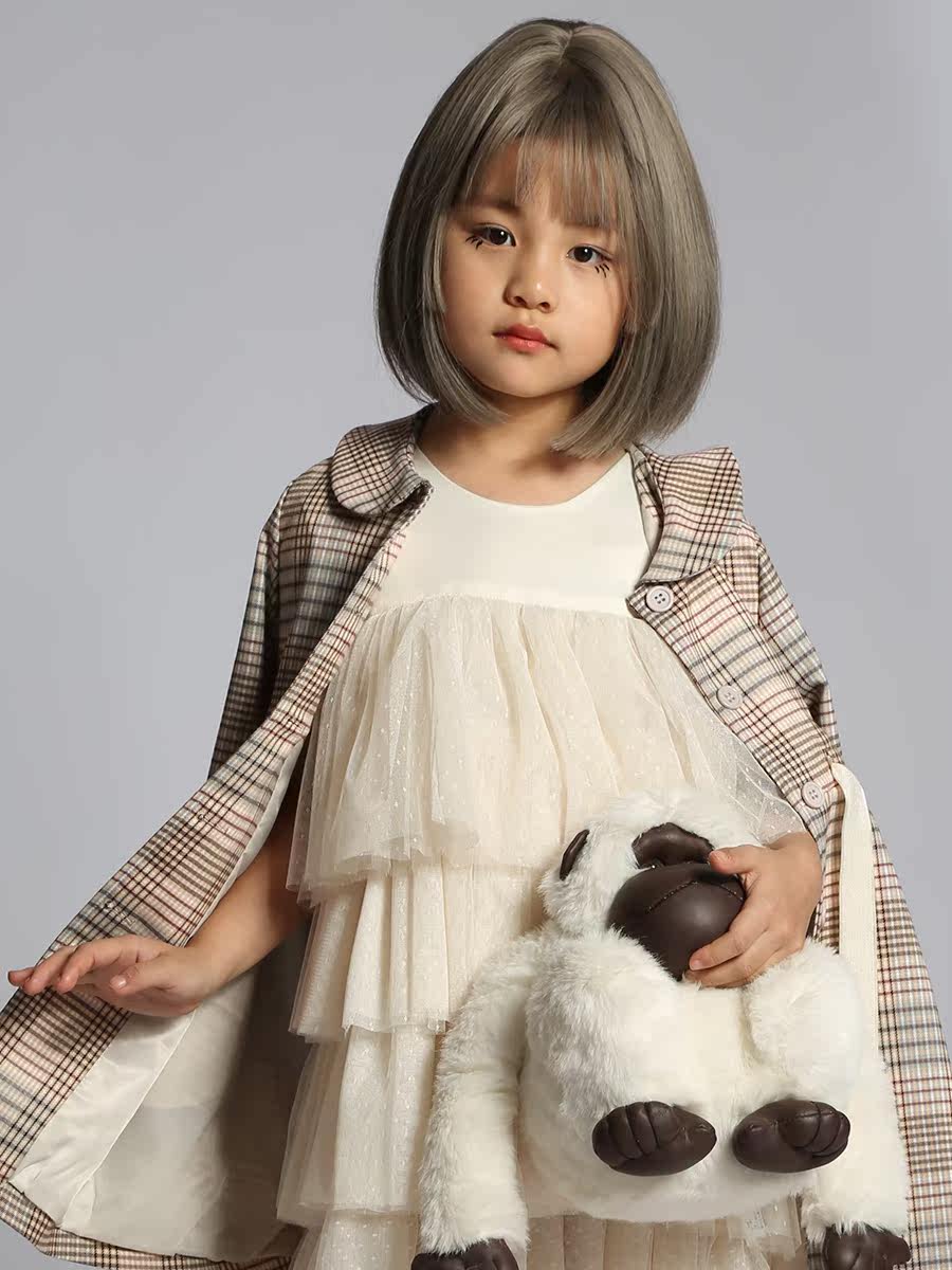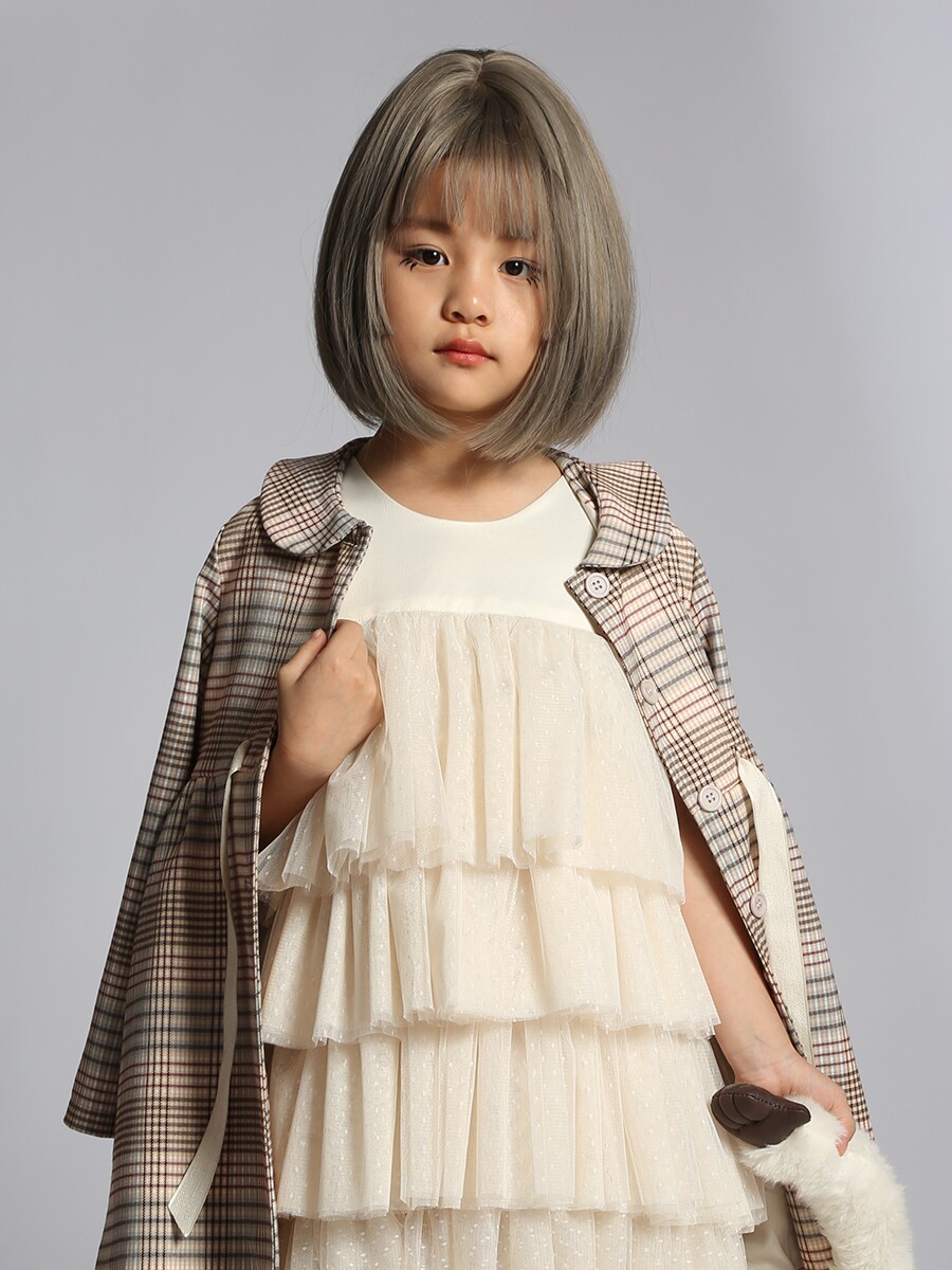 LAVENSEY2022 Spring New Girls and Children Plaid Trench Coat Dress Skirt Western Style British Middle School Children's Long Sleeves