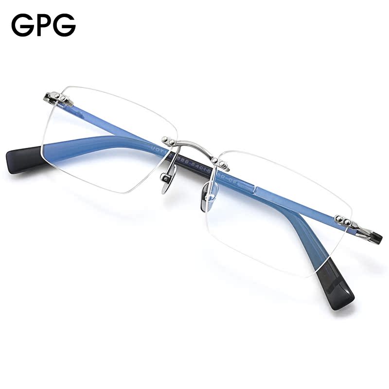 Pure titanium ultra-light frameless myopia glasses frame cut edge degree anti-blue light with height number glasses frame men's luxury