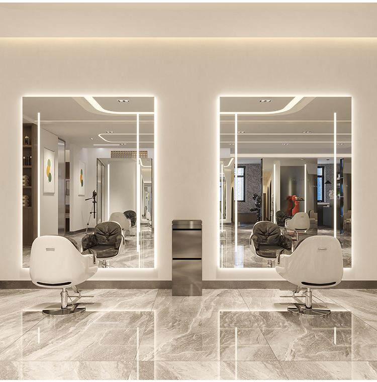 Net Red Hairdressingshop Big Mirror Hair Salon Special High-end Landing Single-Sided Beauty Hair Lens Table With Lamp Haircut Mirror New