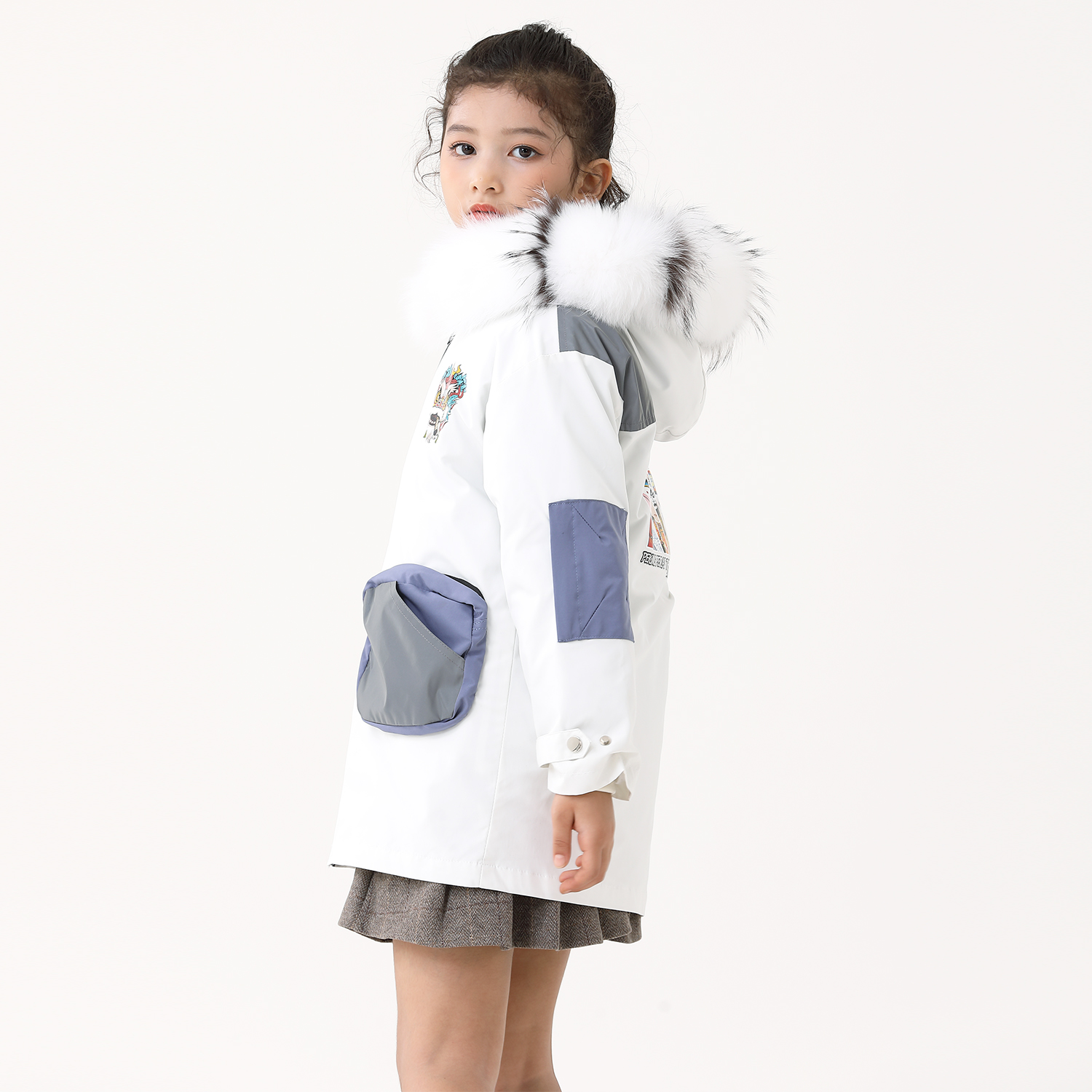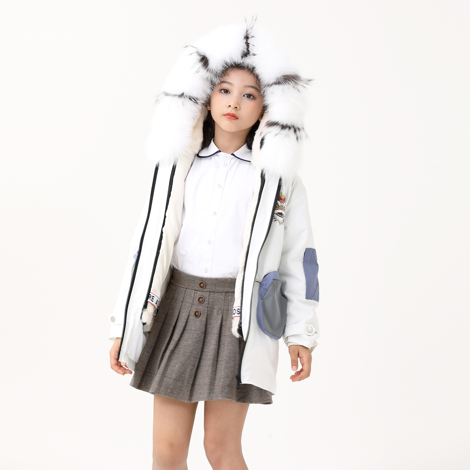 Children's faction overcomes boy girl's winter short Rex Rabbit Fur Foreign Pie Coat Korean version True fur collar thickened jacket