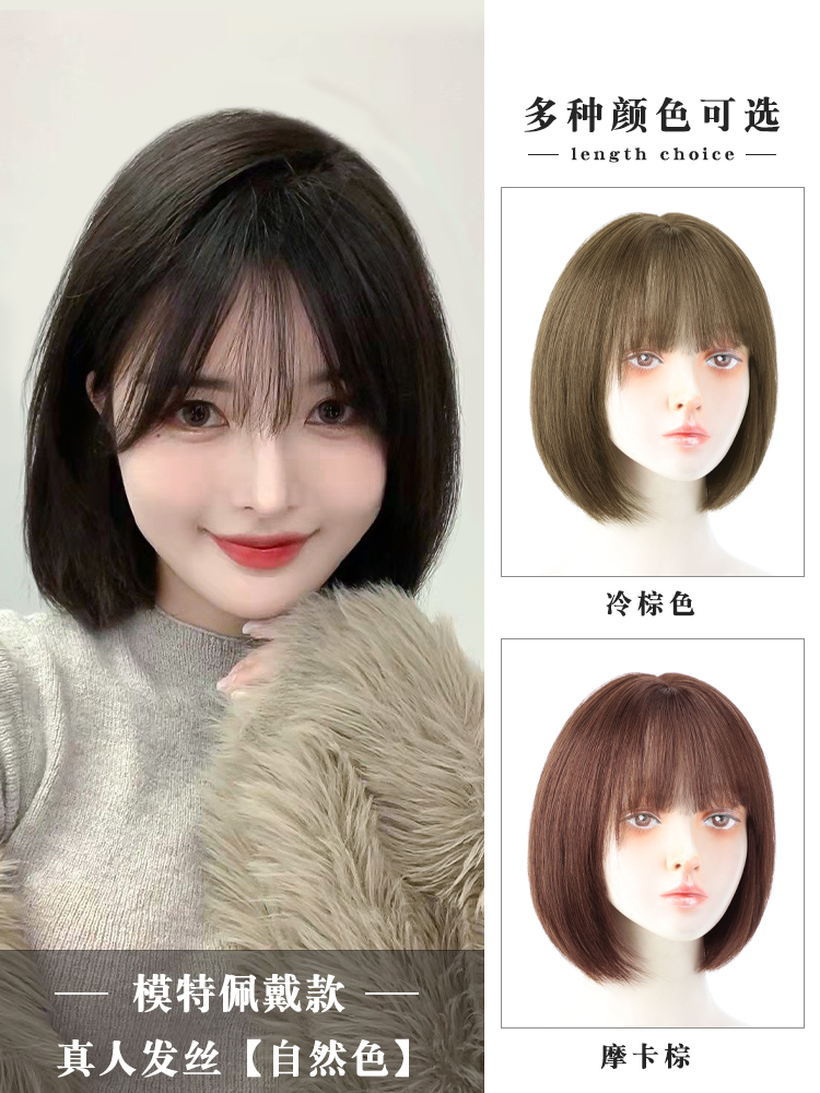 Wig short hair female real hair full real hair 2021 fashion new natural full head cover collarbone hairstyle wig set