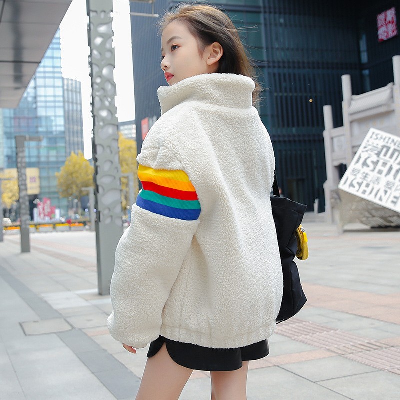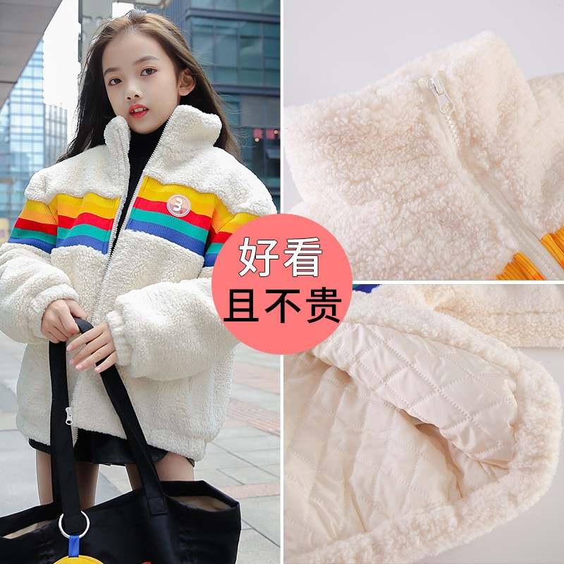 Girl Lambs Wool Coats Foreign Pie 2021 Autumn Winter New Children's Clothing CUHK Child Grain Suede Gush Blouse Tide