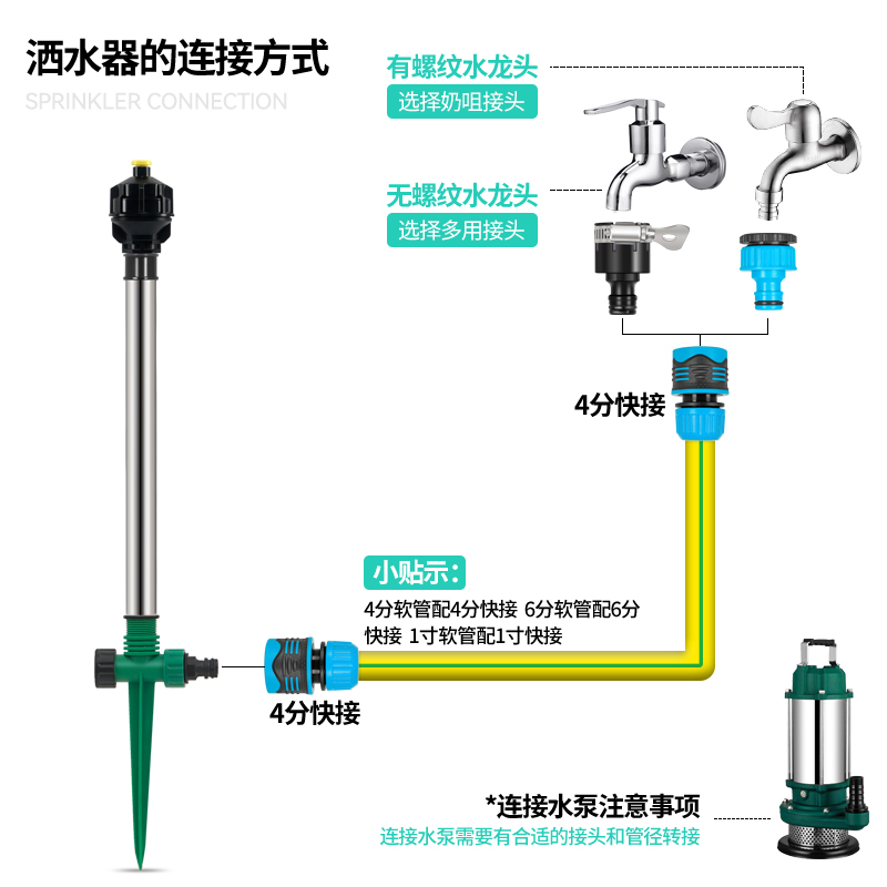 Garden sprinkler head pouring ground rotation 360-degree spray irrigation gardening watering Irrigation Lawn Sprinkler Automatic Water Spray