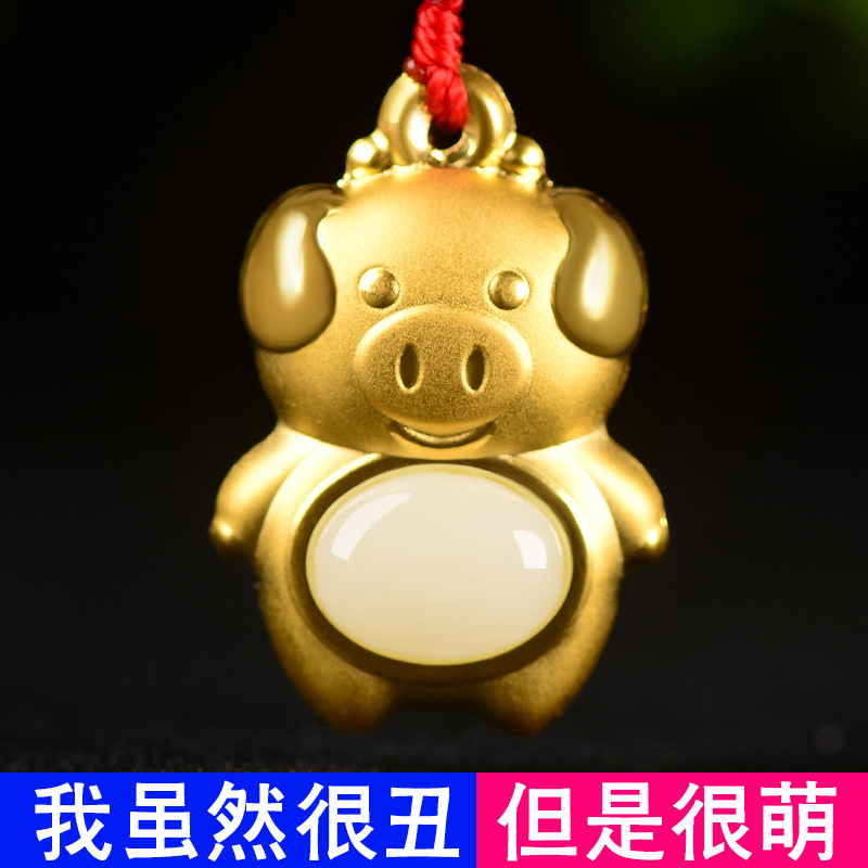 Golden jade pig is the year of the male and female zodiac jade jade jade 3D hardgold inlaid