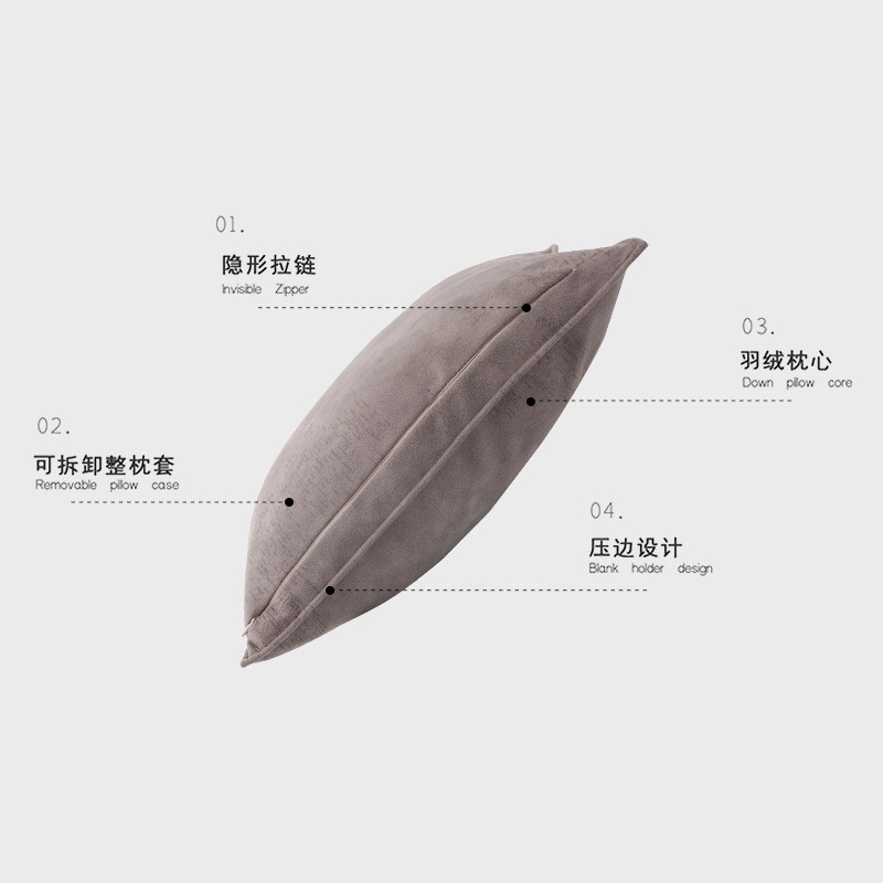 High-grade white goose down feather pillow bedside large back light luxury sofa cushion bedroom living room office waist pillow gray