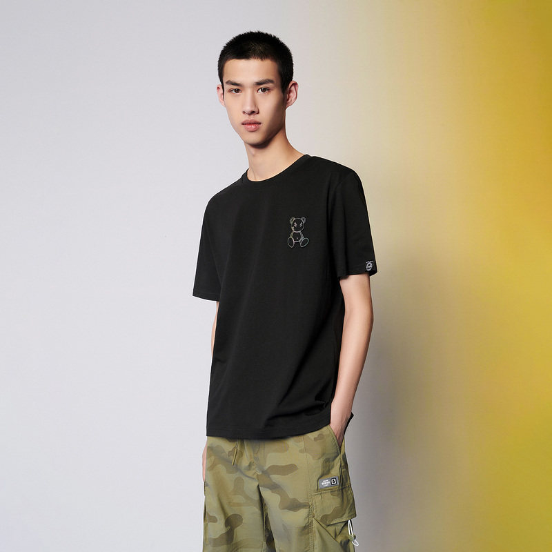 HLA Heilan House round collar black Cubs printed short sleeves T-shirt 22 summer new hit undershirt lovers male and female tides