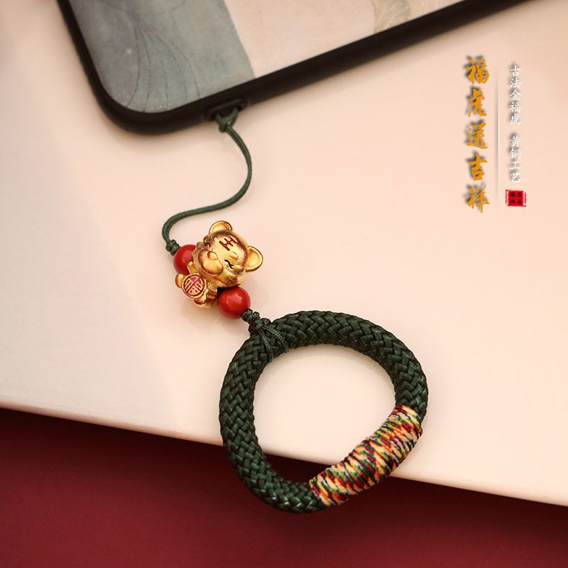 Brass Zodiac Mascot Tiger Mobile Phone Chain Lanyard Zodiac Year Jewelry Ring Buckle Small Golden Tiger Pendant Pendant Gift