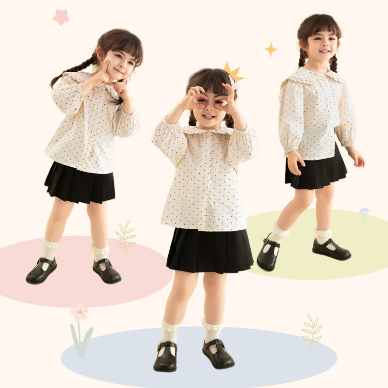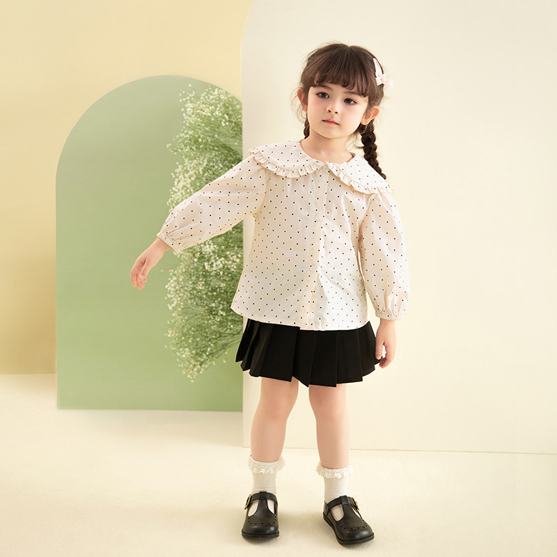 Girl Shirt Spring Autumn Long Sleeves Baby Bo Dot Blouses Spring Little Children Dolls Collar Clothes One Year Old Baby Spring Dress Girl