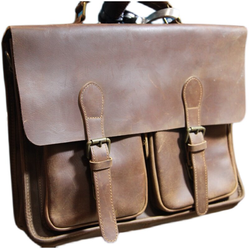 British retro Cambridge bicycle bag head layer Crazy Horse leather messenger bag small cloth car BROMPTON37*28*9 - Taobao