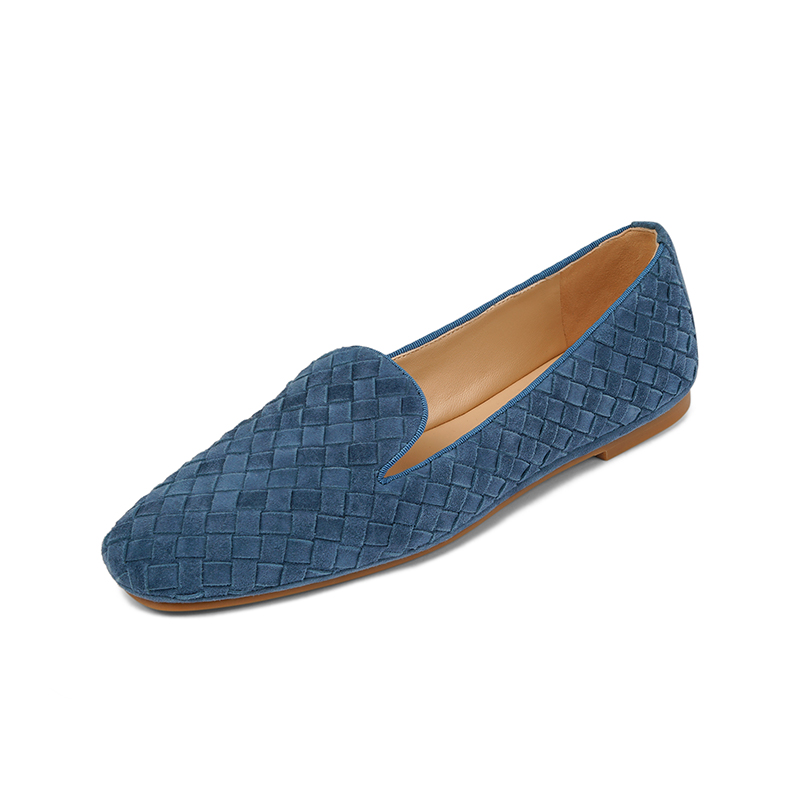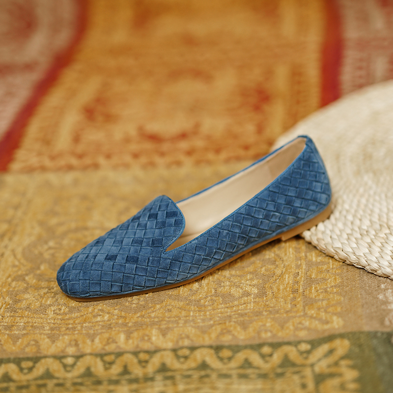 ins is great to wear~ New genuine leather square-toe loafer lazy slip-on woven flat shoes women's grandma shoes