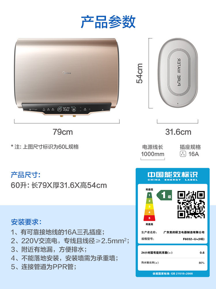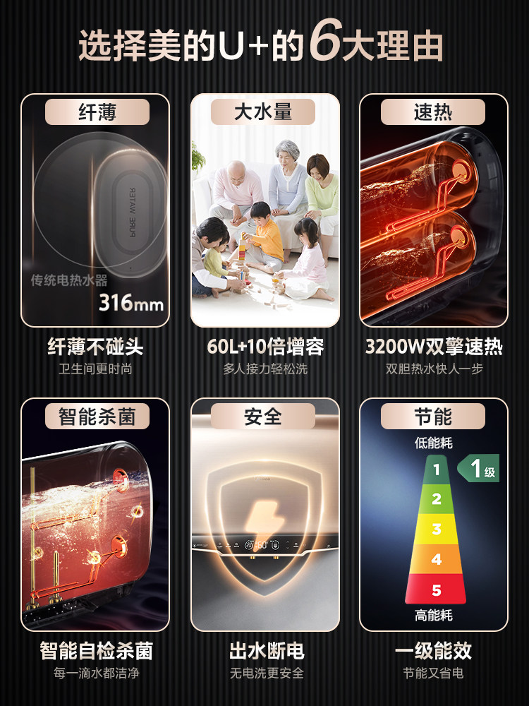 Beauty 60L liter U speed hot ultra-thin U type flat bucket electric water heater Home electric double biliary makeup room Smart home appliances
