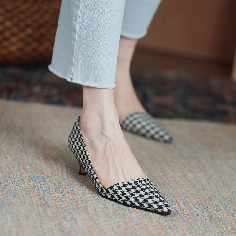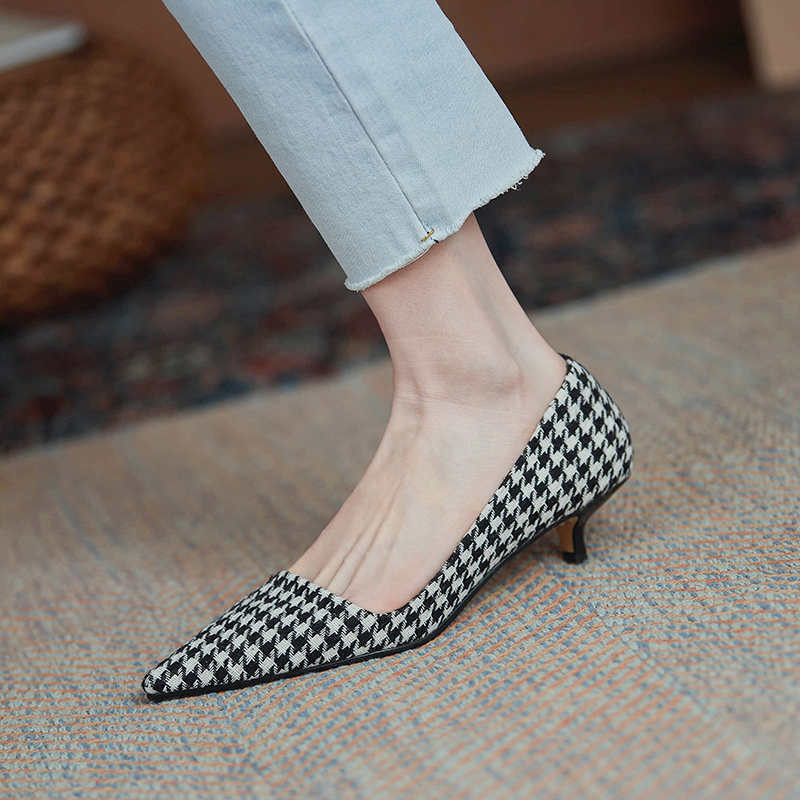 chic giant reduction age strong push self-retention style wearing a hitch leather fabric pointed fine heel single shoe female cat heel shoe