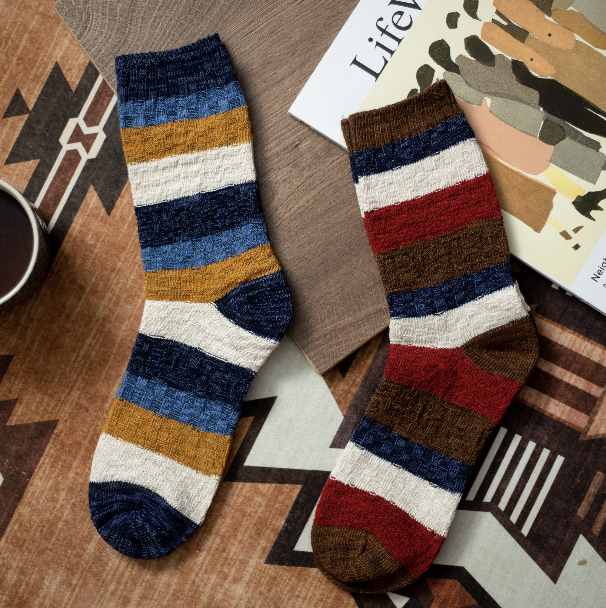 EKVILIBRO Men without bone stitched head pure cotton Coloured rugged panes splicing coarse needles in stockings Sox