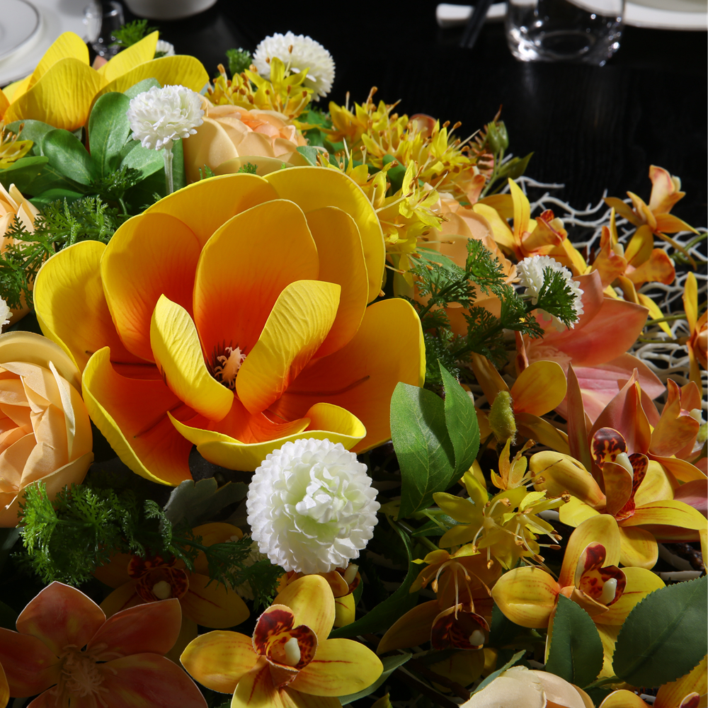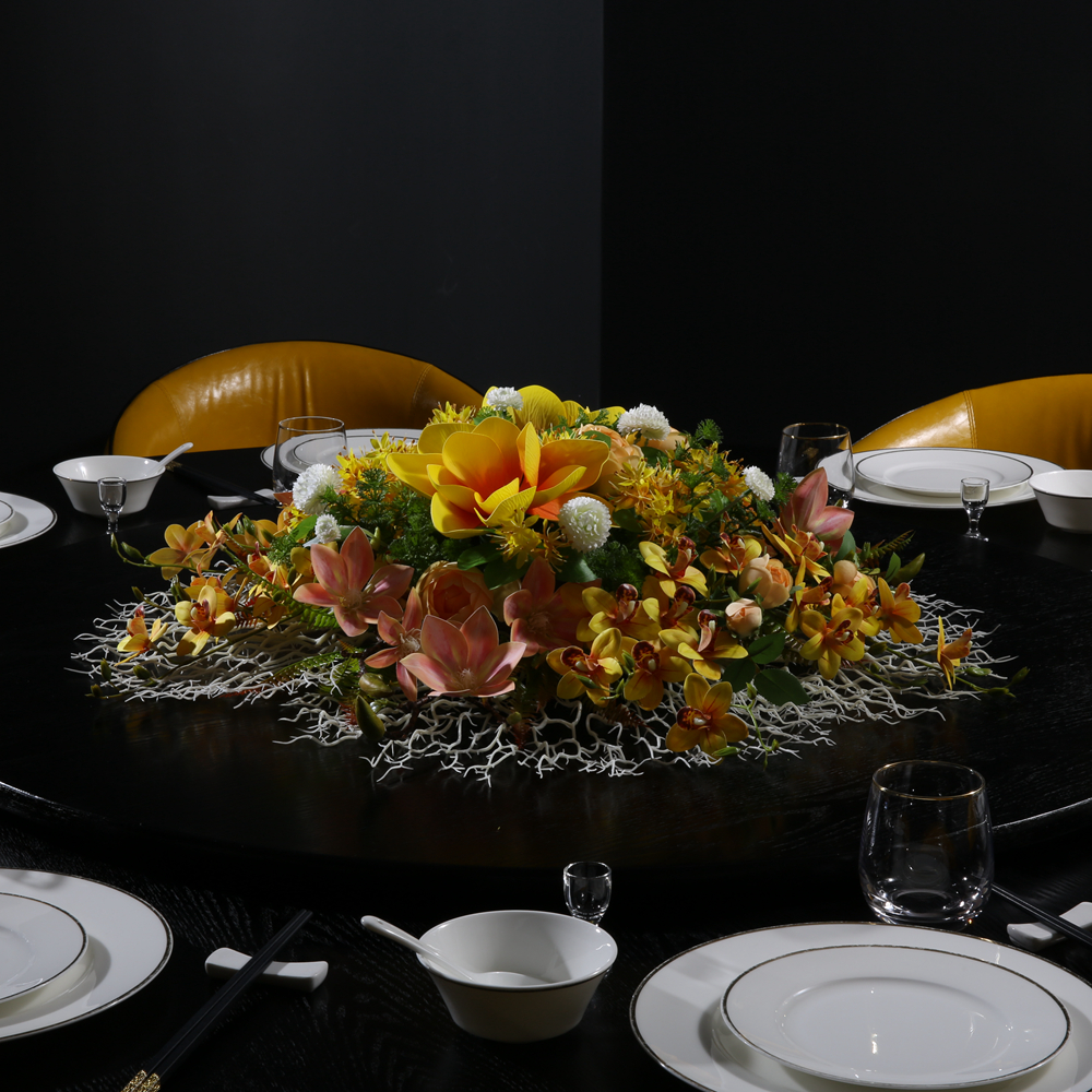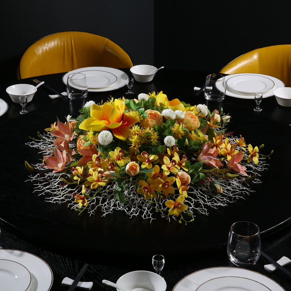 High-end hotel table flower decoration dining room large round table turntable center flower conference table simulation flower decoration fake flower