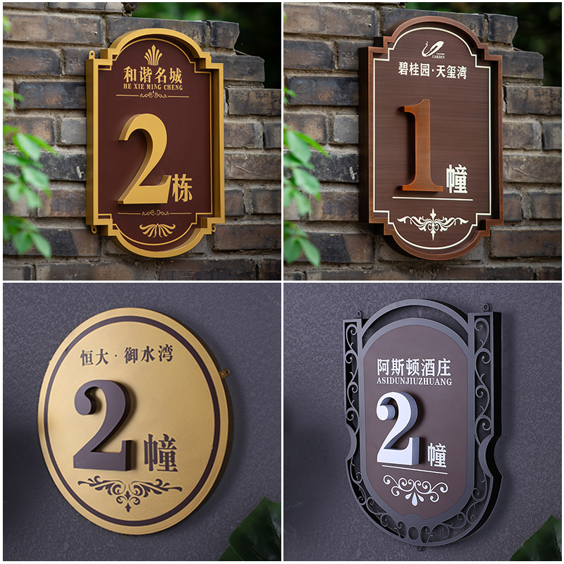 High-end building brand stainless steel antique brand unit brand villa real estate community indication sign building number plate customization