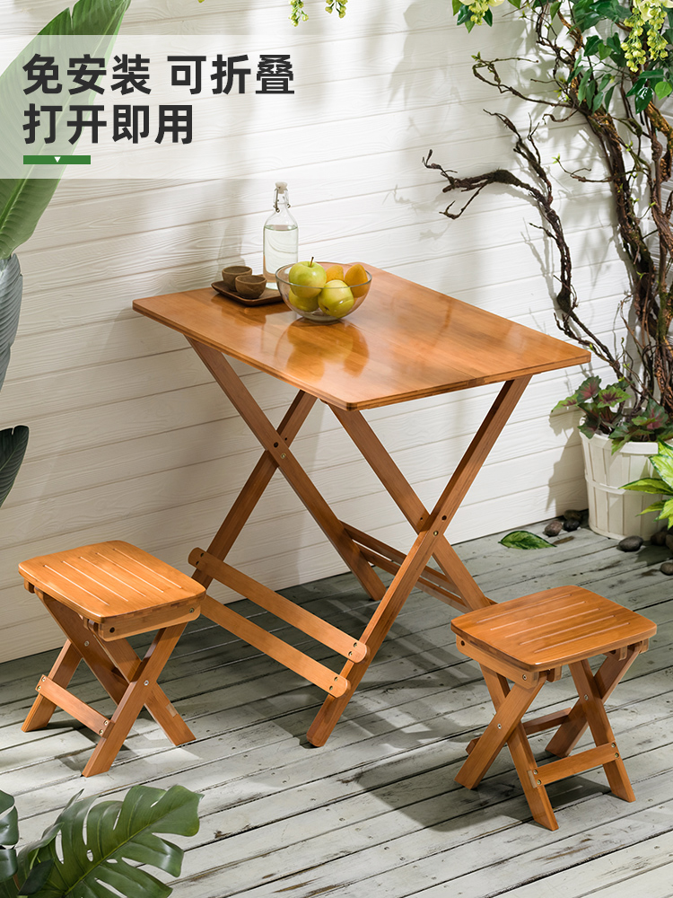 Simple portable foldable tablesOutdoor square tablesEat dining table and chairdsHousehold stalls solid wood pure bamboo