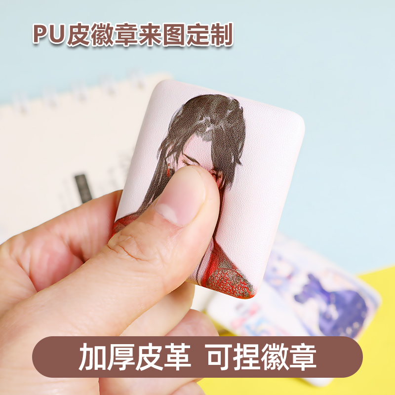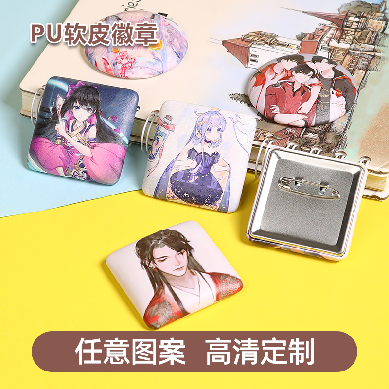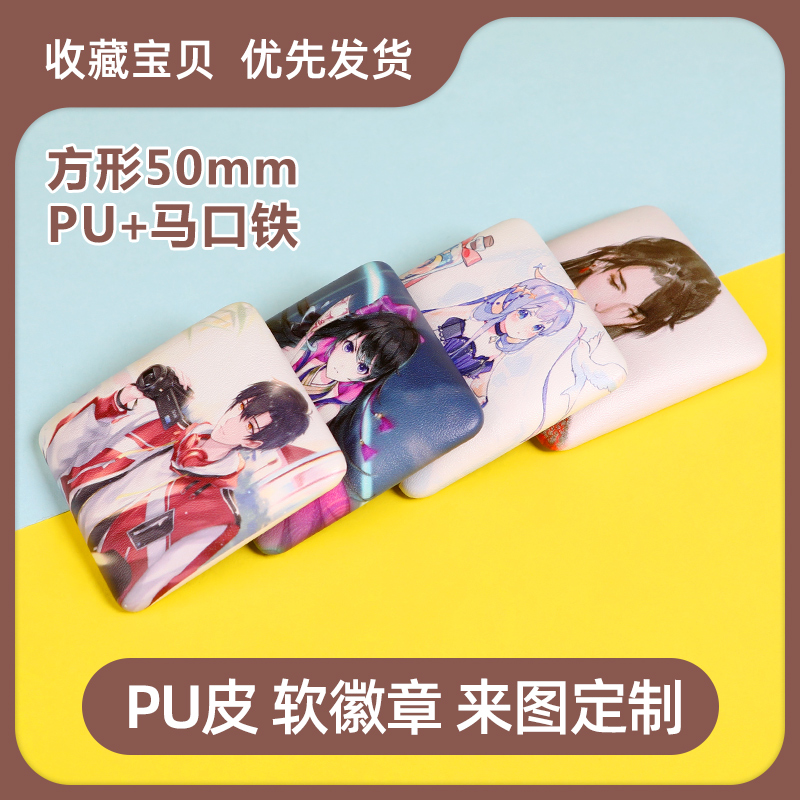PU soft pew square badge custom made leather can pinch it 5 cm badge personality anime diy bar