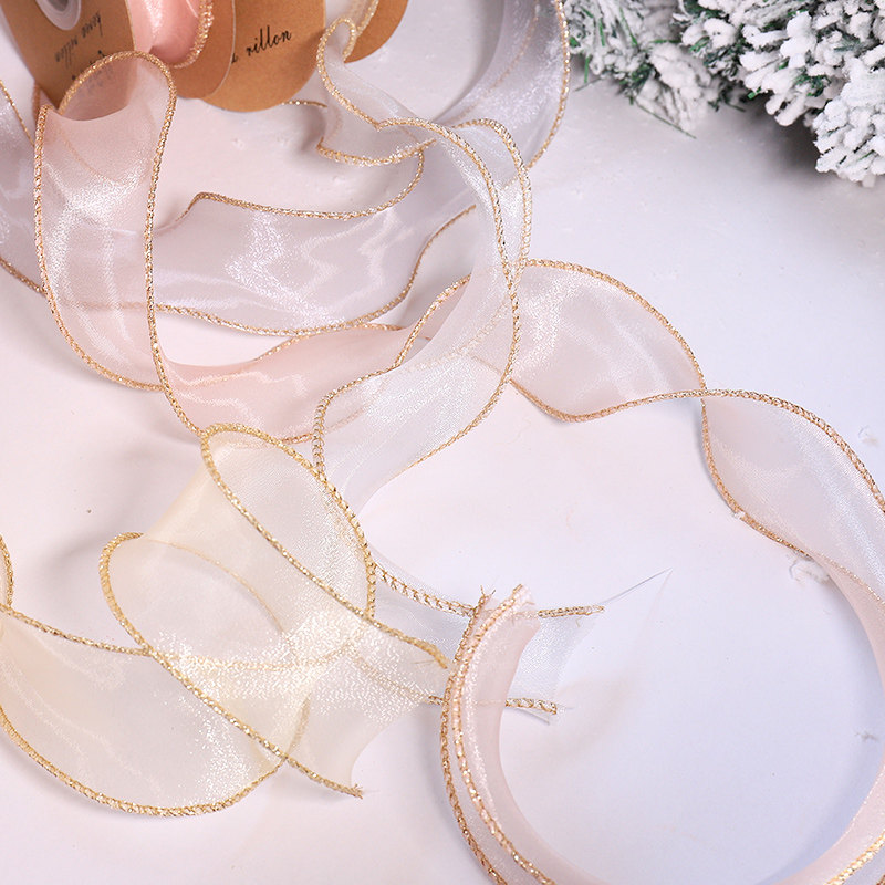 Christmas tree decoration silk with Phnom Penh fish tail wave yarn with flowers gift packaging material flower shop DIY butterfly knot