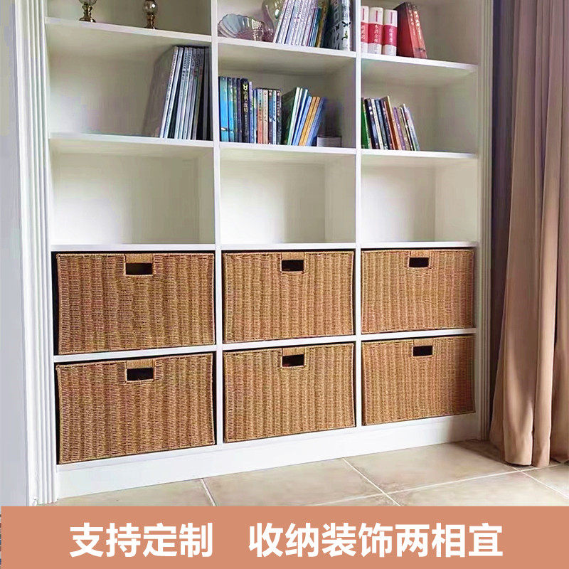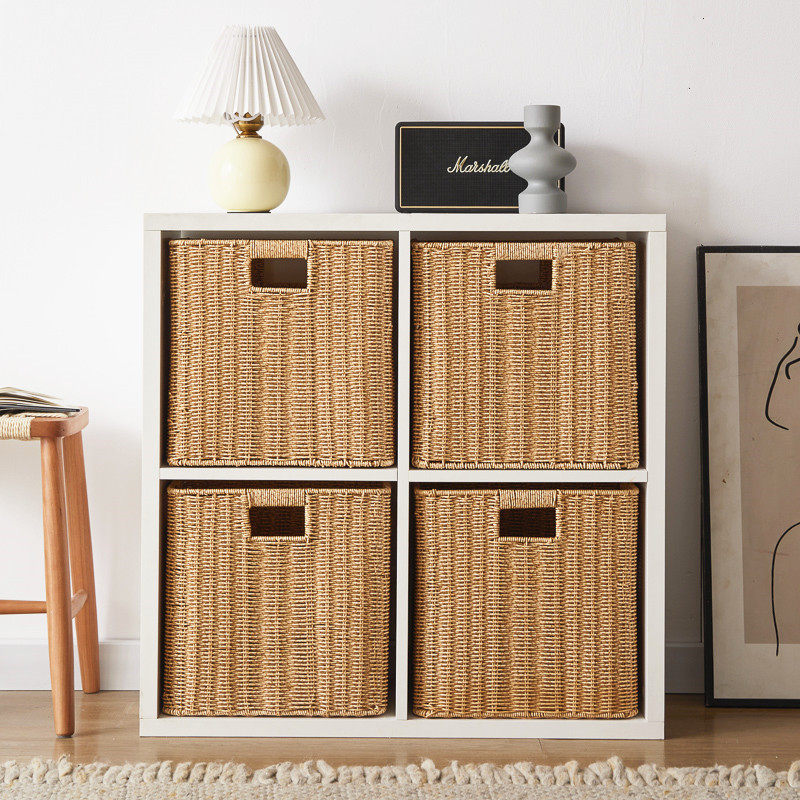 Lattice cabinet woven containing basket Japanese style imitation rattan chic containing basket square containing box debris finishing storage hamper