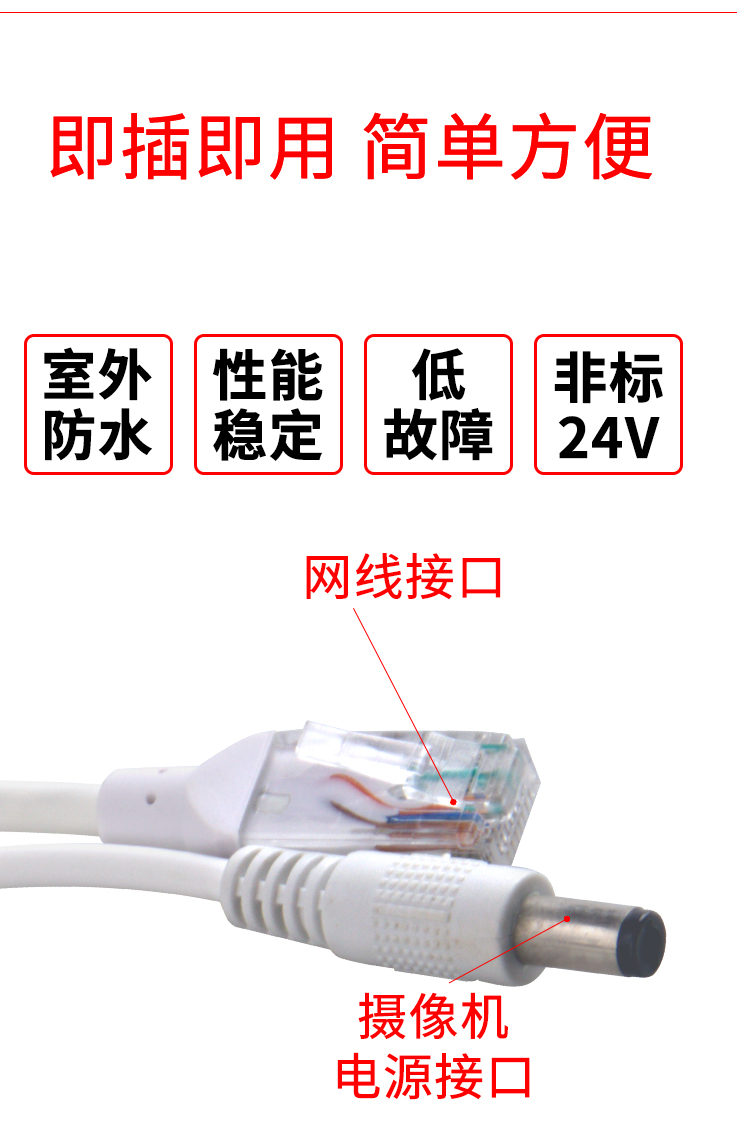 Waterproof DC12V-15V Non-Label Waterproof POE Separator Thru Type Power Cord Connection POE Power Supply Module