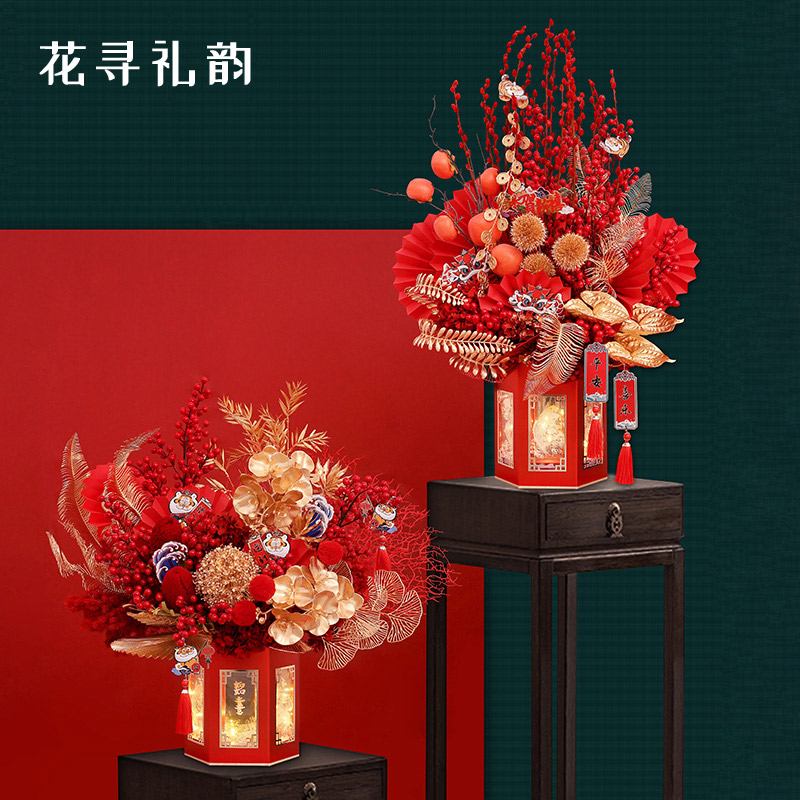 Floral-seeking rhyme Ruyi Fengden New Year's Eve Flowers Packing Boxes of Lunar New Year Flowers Flowers Flower Arrangements Barrel National Tide Hand Flower Boxes