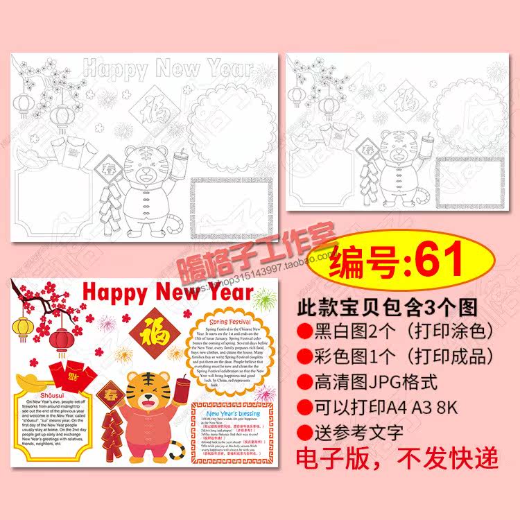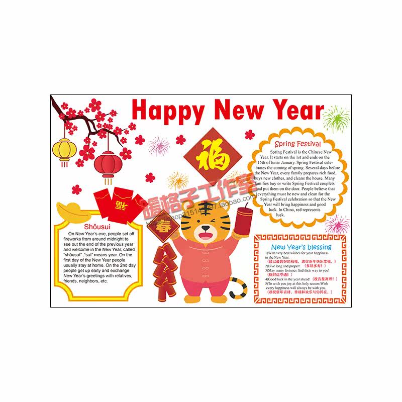 Happy new year happy new year English handwritten newspaper template