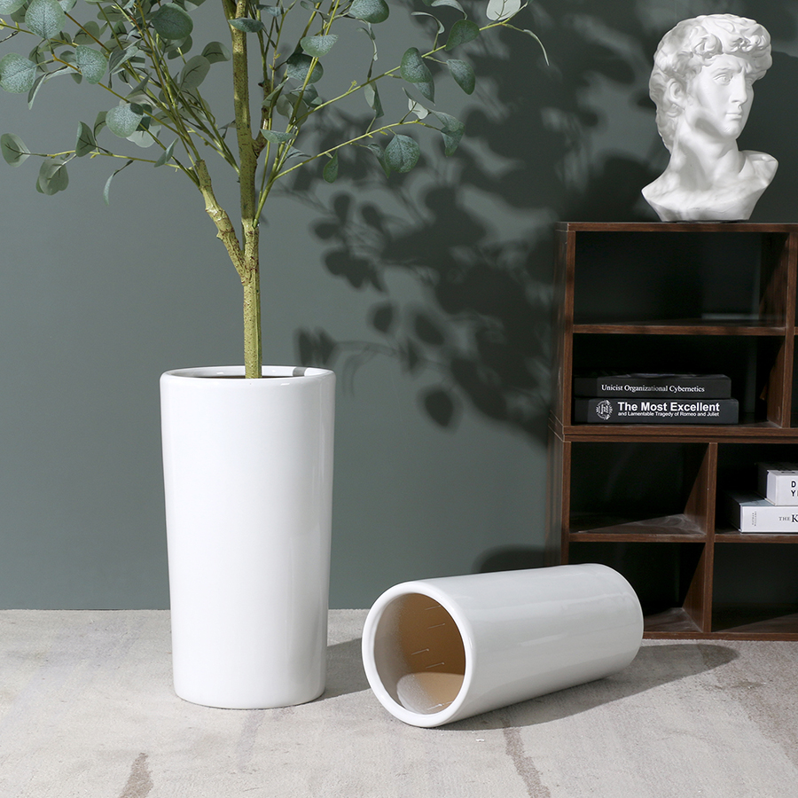 Tall straight-tube flower pot Japanese-style simple white ceramic flower pot extra-large high-deep home living room vase ornaments
