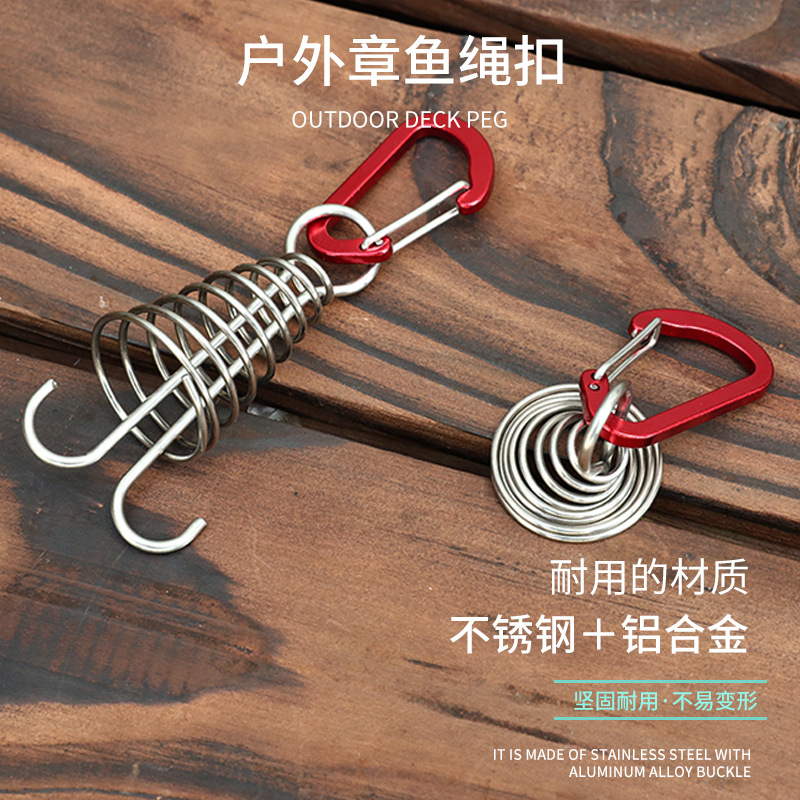 Outdoor camping octopus rope buckle camping deck nail stainless steel fixed tent rope buckle wood board hook spring wind rope hanging