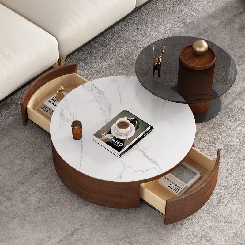 Light luxury coffee table round living room home modern minimalist small apartment tempered glass Nordic rock plate coffee table combination