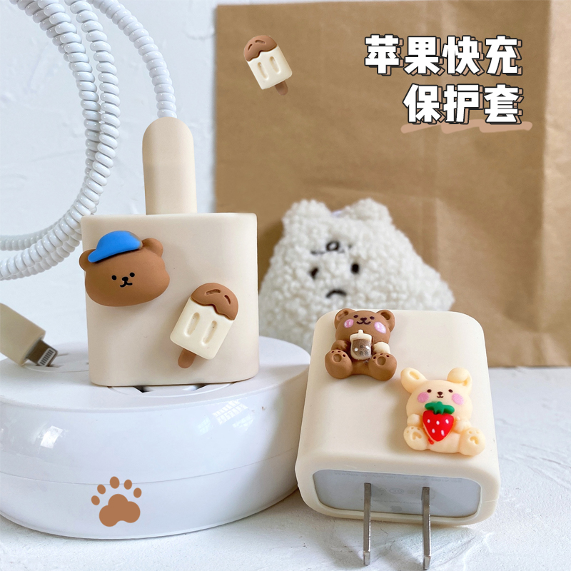 13Promax data line protective sheath Apple 20W quick filling protective shell iPhone12 charger protective sleeve cute cartoon 11PRO charging wire head protective sleeve anti-breaking wound rope