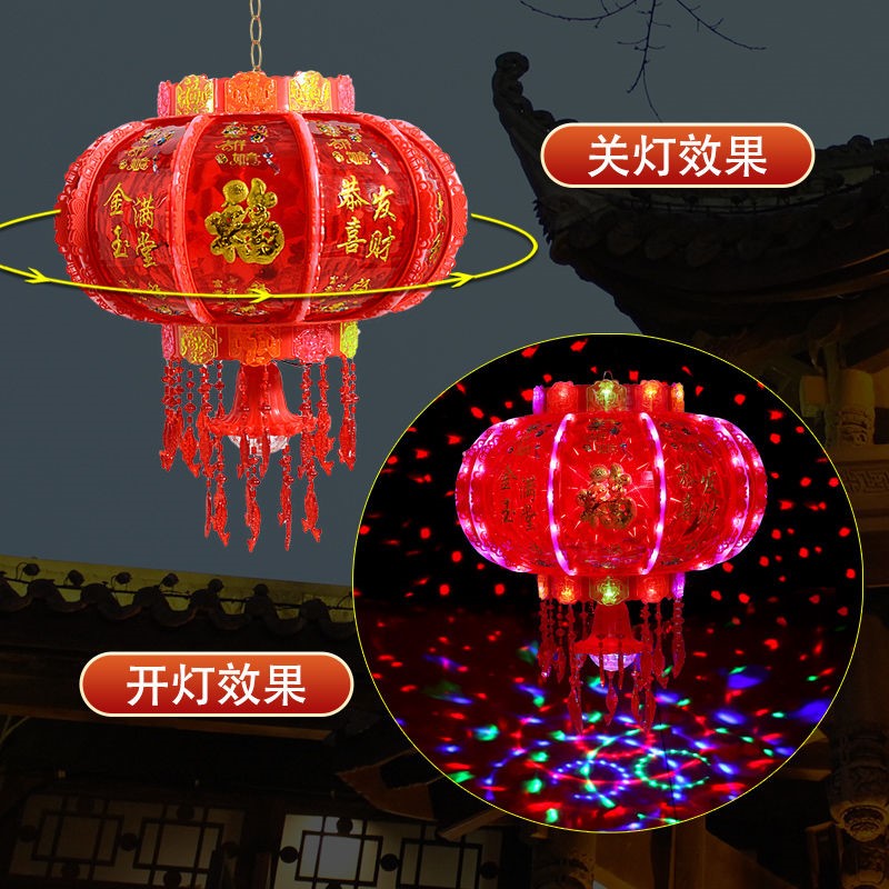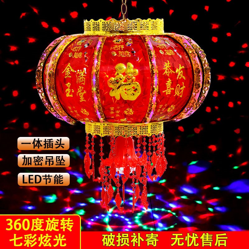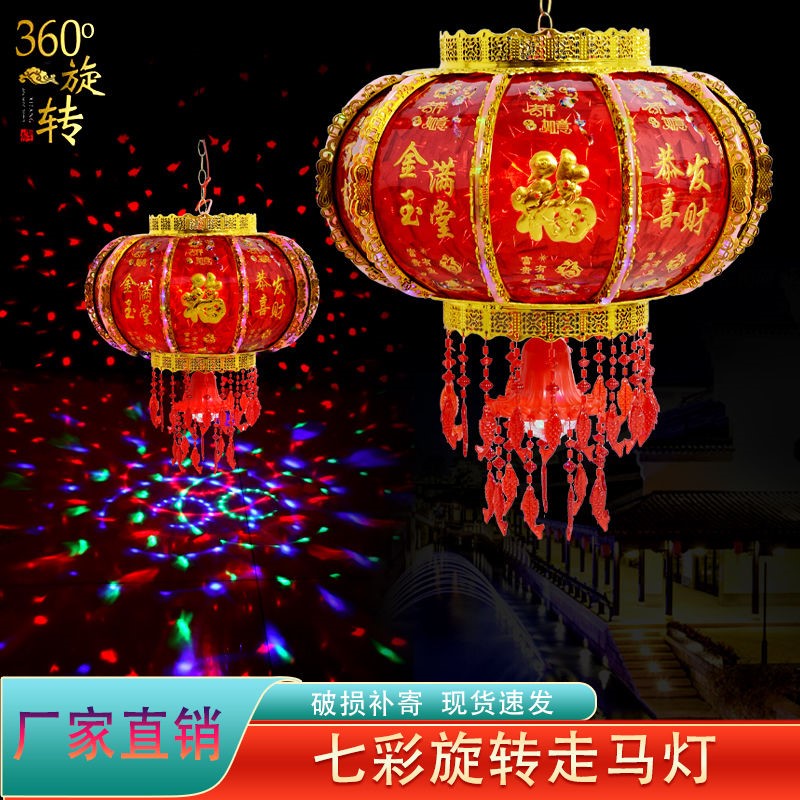 New Year lantern 7 colored led rotating walking coal oil lamp cage balcony gate Qiao relocating fu characters Spring Festival lantern wedding lantern