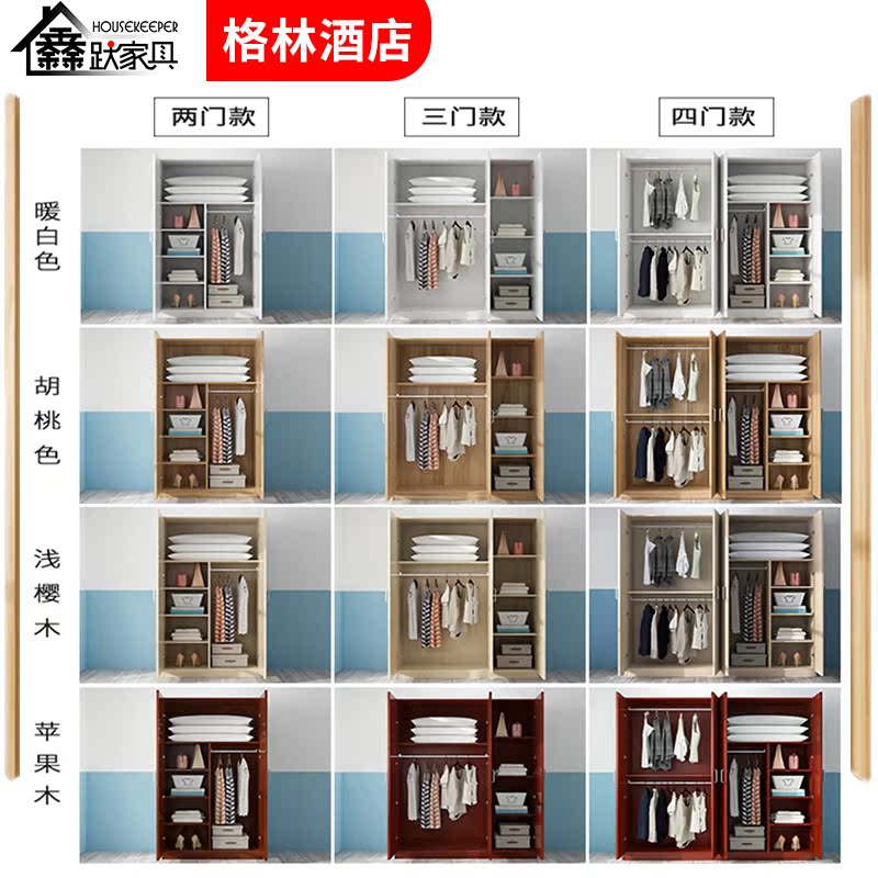 Two doors (white) two doors (cherry wood) two doors (apple wood) two doors (light walnuts) three doors (white) three doors (cherry wood) three doors (apple wood) three doors (light walnuts)