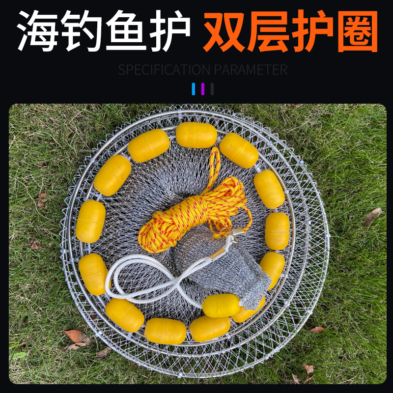 Double-ring Ball Fishing and Fishing Protection Hand Weaving Stainless Steel Double-ring Dry Fish Net Pocket