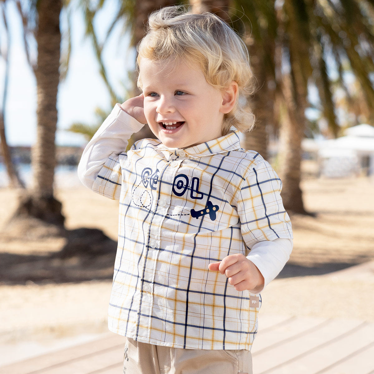David Bella children's clothing boy's shirt children's autumn clothing 2022 new baby shirt fake two-piece plaid top cotton