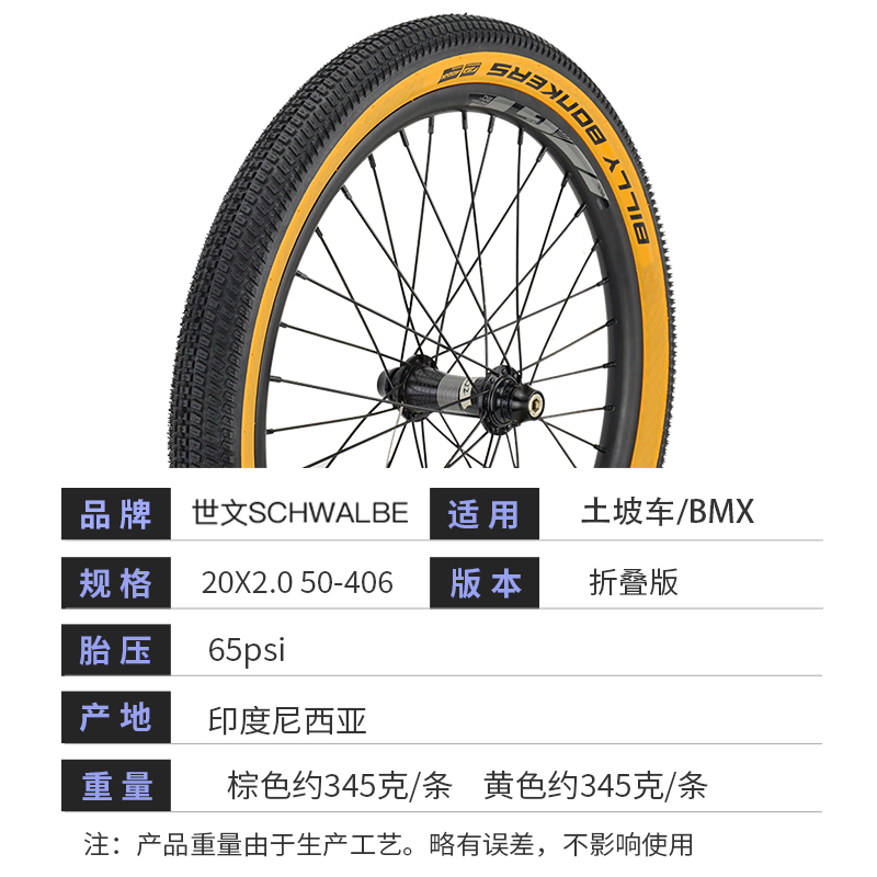 Schwalbe billy bonkers 20 inch 20x2 0 yellow edge folding version of the soil slope tire