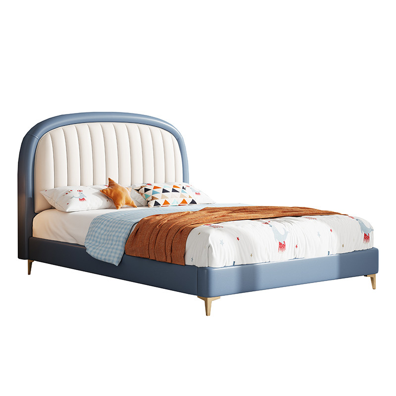 Children's bed Boys blue leather soft bag solid wood high box bed modern minimal boys teenagers 1 5m single bed