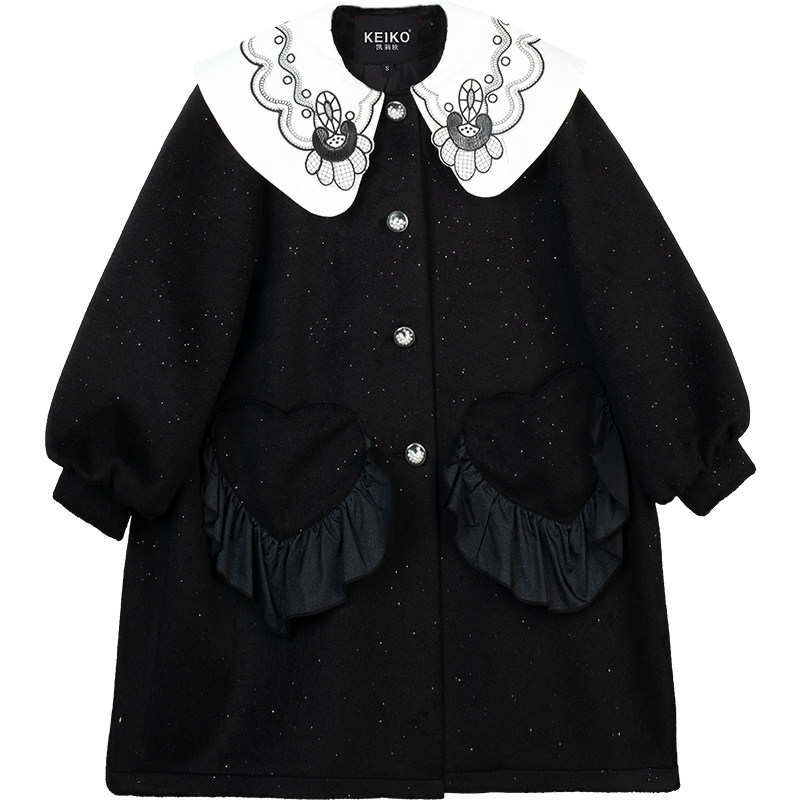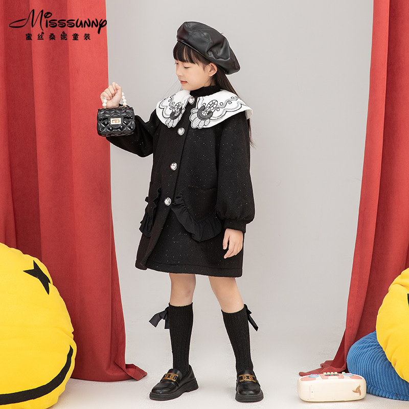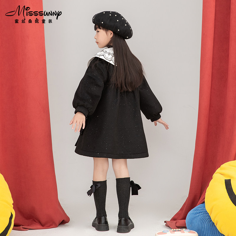 Pro-Child Temperament Embroidered Child Fur Black Coat 2021 New Girl Foreign Pie Thickened Shiny Shiny Coat