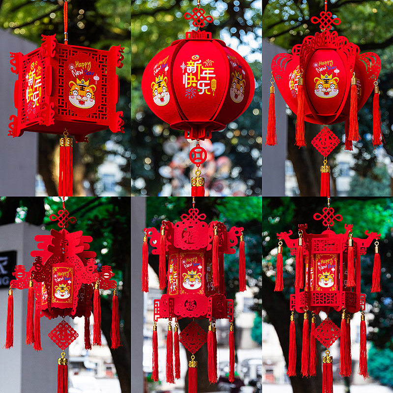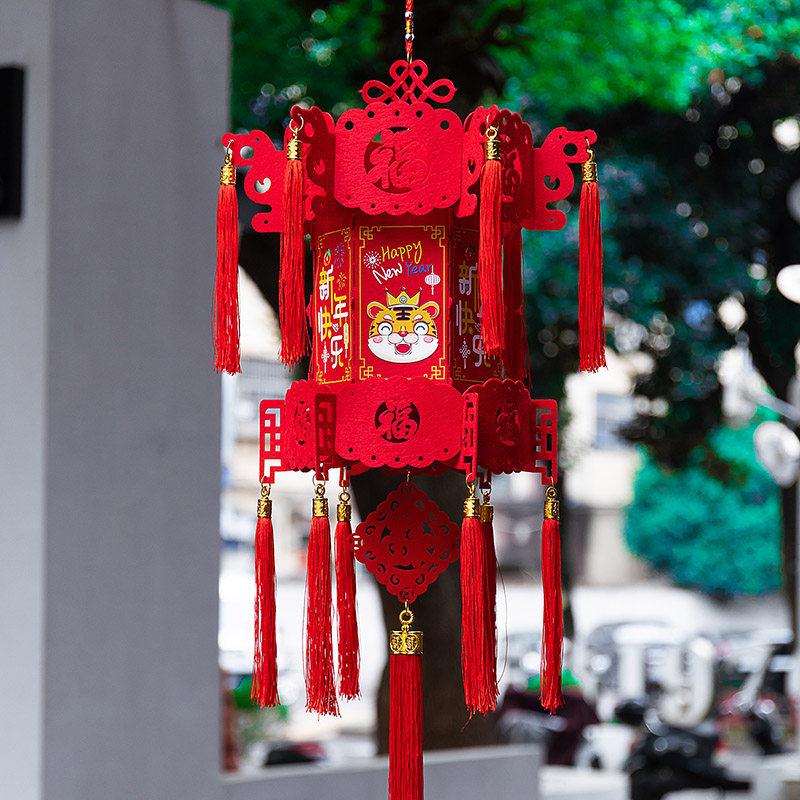 Fragrant 2022 tiger New Year's New Year's New Year's New Year's New Year's Day decorations Red lantern hanging decoration Spring Festival Fooword pendant color with indoor scene