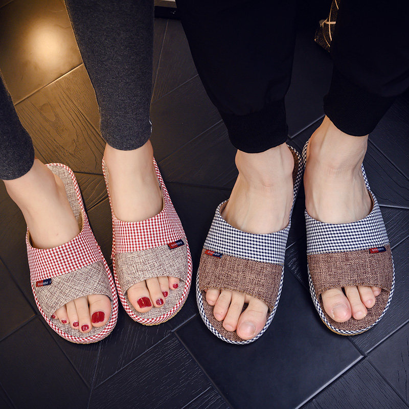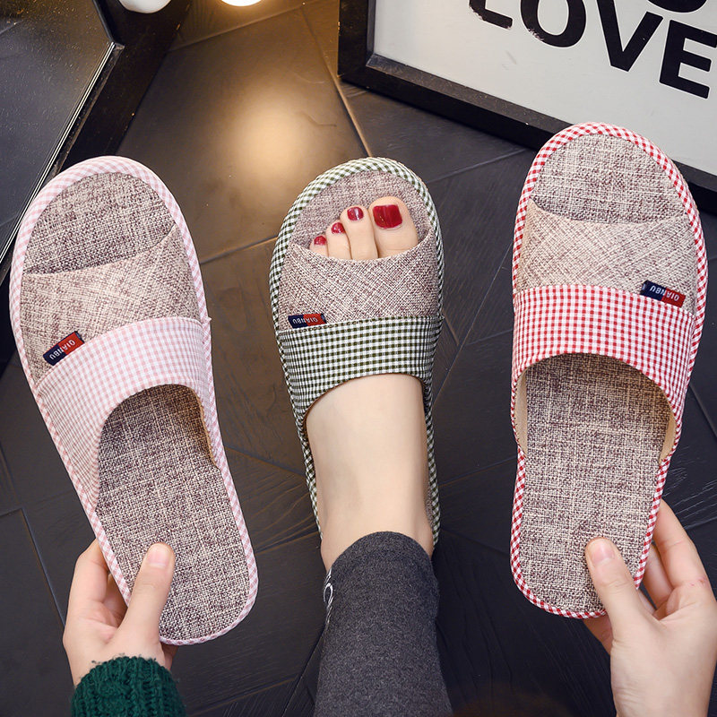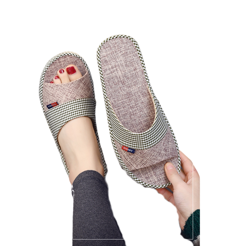 Japanese flax slippers household indoor anti-slippers shoes summer soft sole breathable slippers