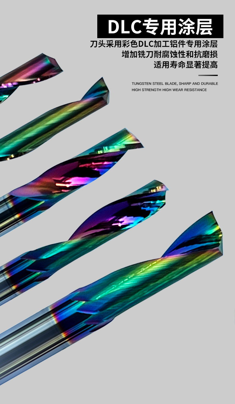 Oley Seven Color Coating Imported Material 5A Single-Edge Aluminum Use Milling Cutter Aluminum Plate Profile Alloy Numerical Control Engraving Machine Cutting Knife