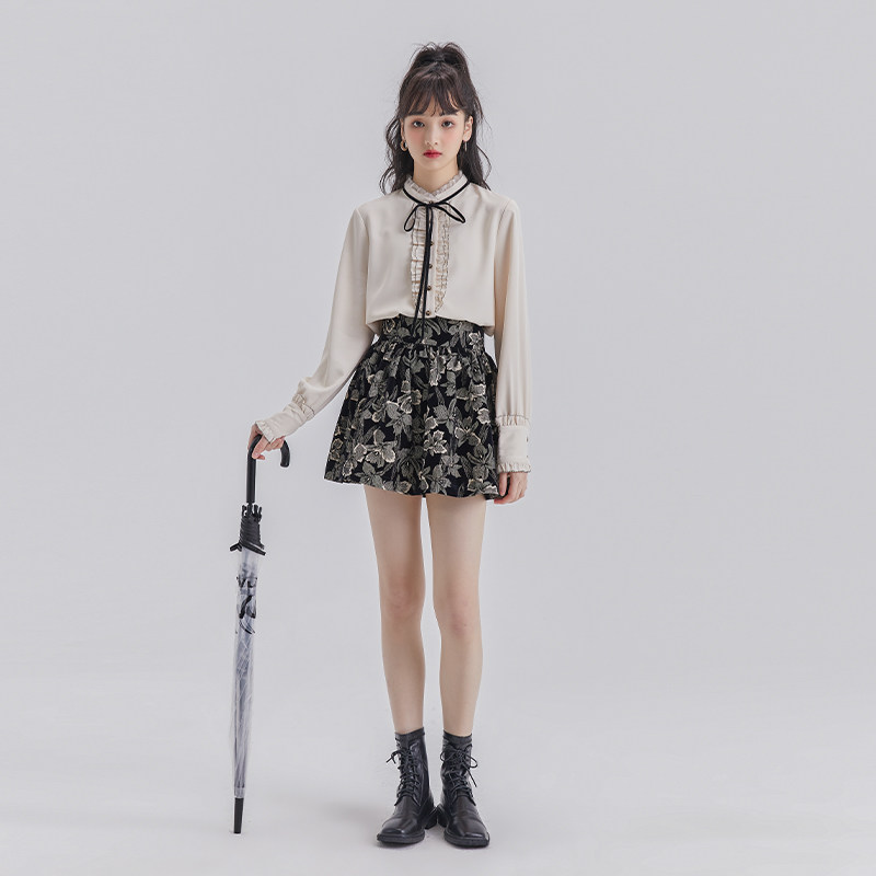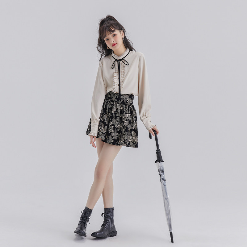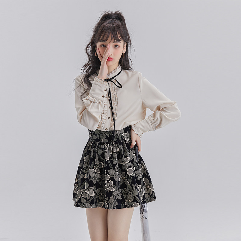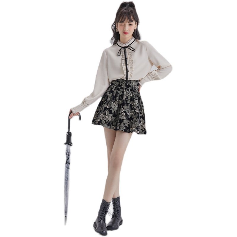 The Little Deer's Puff Evil Play Kiss 22 Spring Summer New Classic Teenage Girl Sensation Bow Tie Shirt Half Skirt Suit