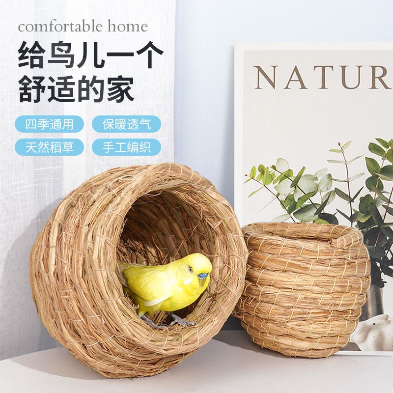 Straw bird's nest peony budgie parrot bird pearl bird's nest small bird's nest breeding box warm winter birdcage accessories