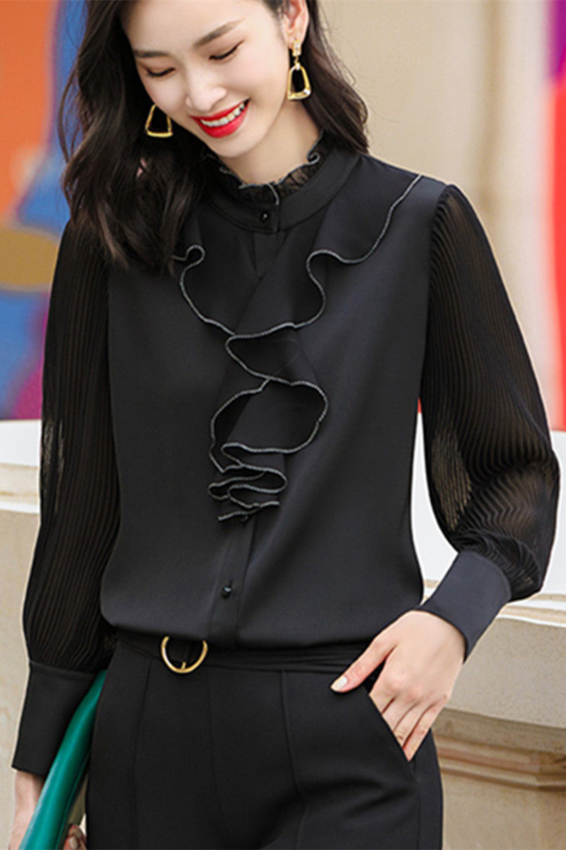 Ruffles stitching shirring pleats fungus buttons topstitching