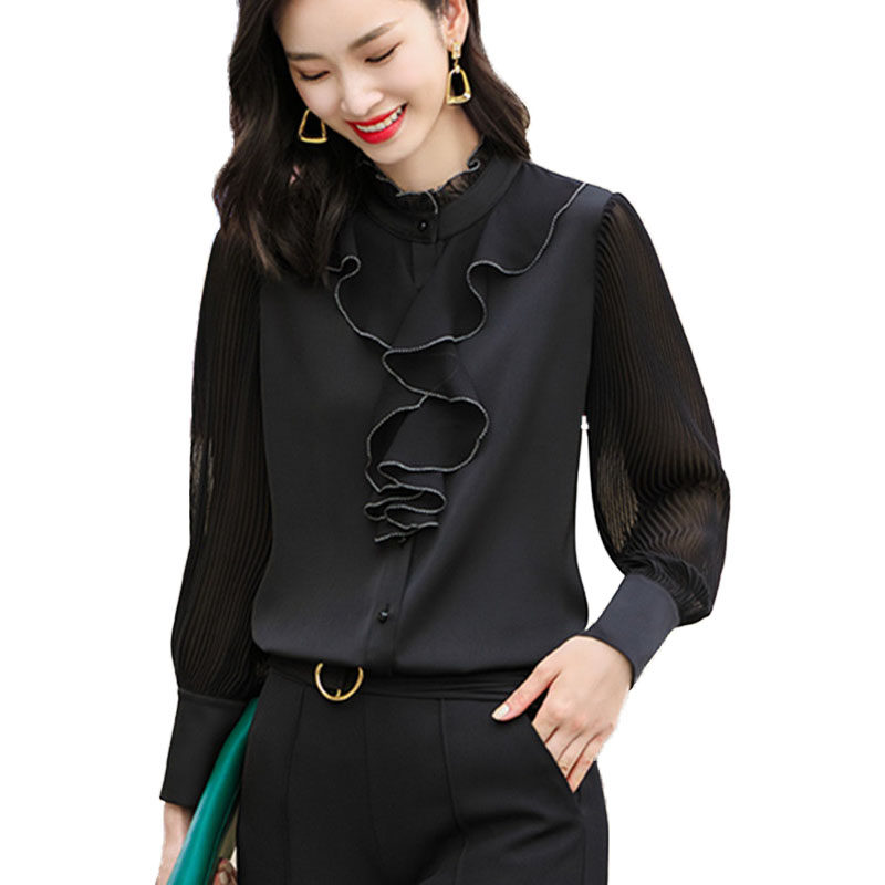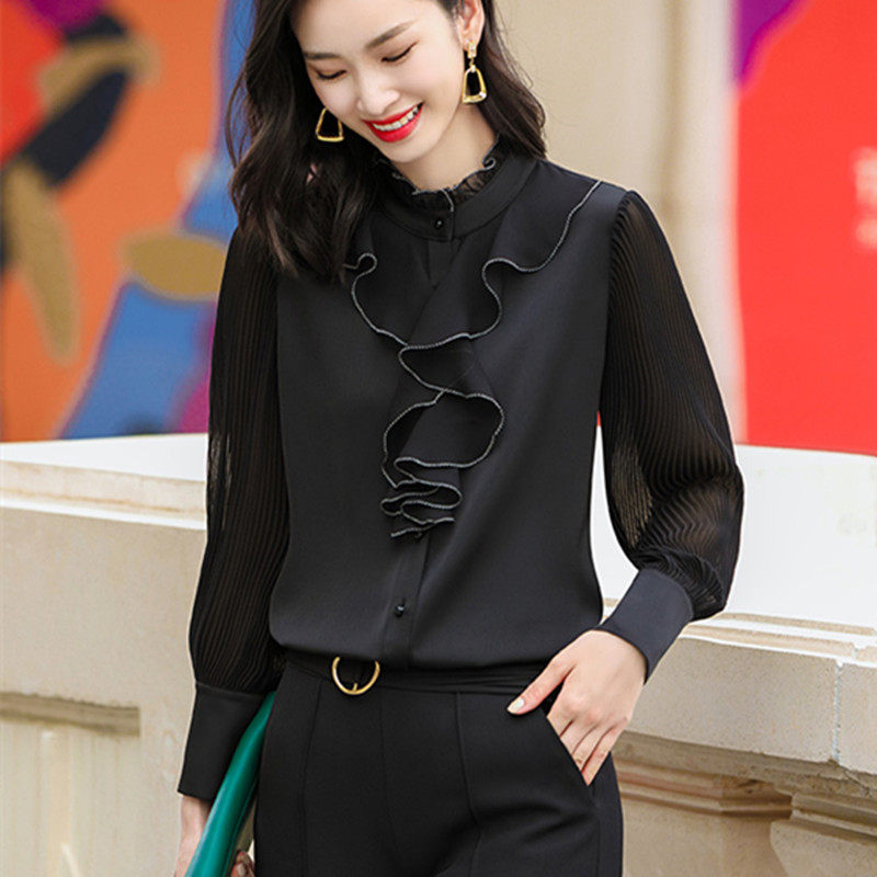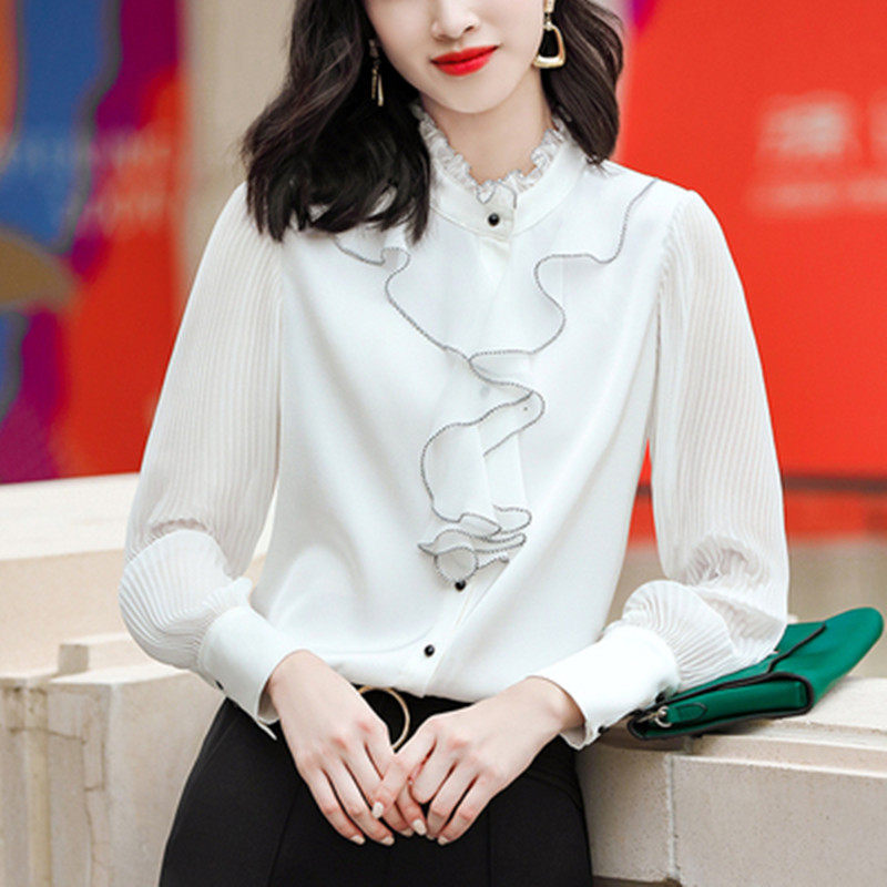 2021 spring new silk mulberry silk shirt women's long-sleeved spring and autumn fashion foreign style white shirt top