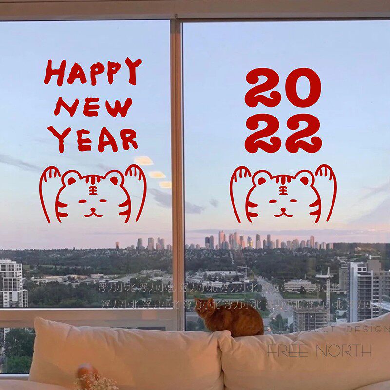 Happy New Year 2020 Get Rich and Get Rich stickers tiger store festive atmosphere glass door stickers window decoration waterproof