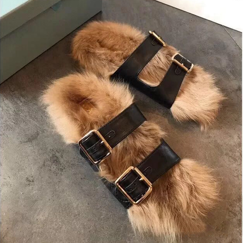 Axige vcruan net red with the same style fur all-in-one fur slippers all-match female winter lazy flat bottom outer wear female