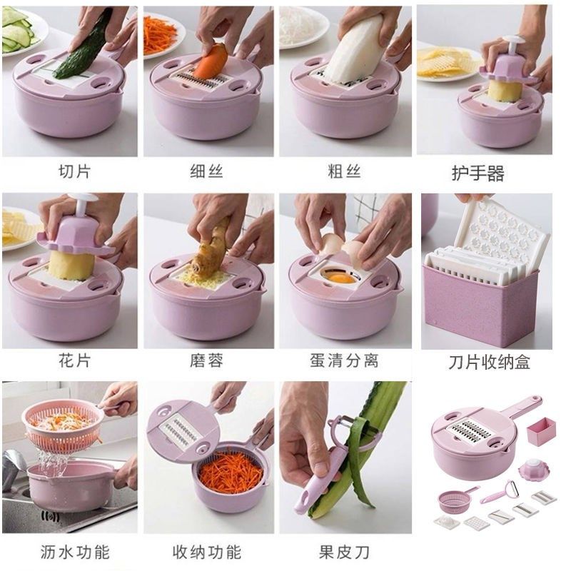 Wheat blue 7-piece set (shredded potato grid) Wheat pink 7-piece set (shredded potato grid) Wheat blue 12-piece set (hand guard drain 2 shreds) Wheat flour 12-piece set (hand guard