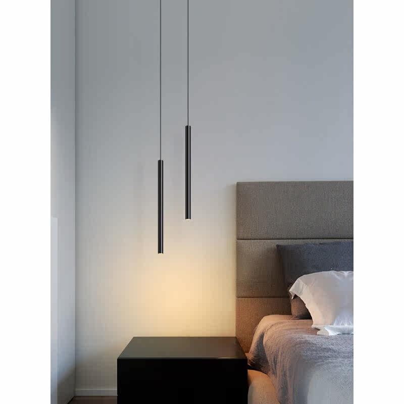 Extremely simple bed headlights bedroom modern minimalist chandelia light extravagant TV background wall hanging wire lamp counter long line small chandelia