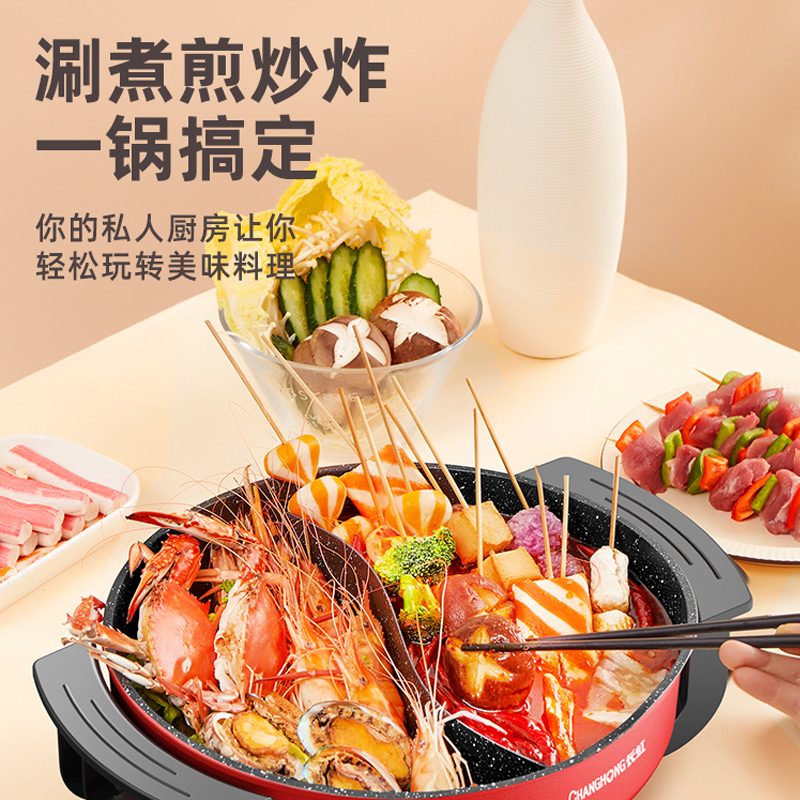 Changhong electric mandarin duck pot hot pot electric pot household plug-in large-capacity multi-function barbecue one super-large quick-cooking pot